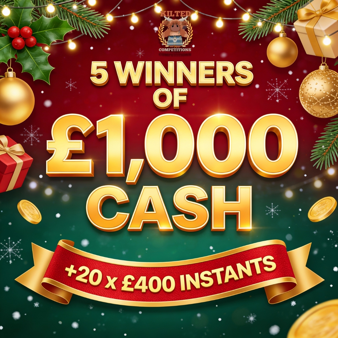This competition is open to UK residents aged 18 or over. You may enter this competition up to 499 times. You will be randomly allocated ticket number(s) when ordering and will receive an email confirmation. The total amount of tickets for this competition is (12999). If all tickets do not sell out, the draw will happen on December 29, 2025 regardless. You must answer the competition question correctly to be entered into the live draw. Incorrect entries will not be notified or entered into the live draw. The live draw will take place live on @KiltedCompetitions Facebook using Google’s random number generator to select the winning ticket number from all Entrants. This competition is in no way sponsored, endorsed, administered by or associated with Facebook, Apple or Google. By entering the competitions, Entrants agree that neither Facebook, Apple nor Google have any liability and are not responsible for the administration or promotion of this competition.