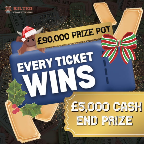 This competition is open to UK residents aged 18 or over. You may enter this competition up to 999 times. You will be randomly allocated ticket number(s) when ordering and will receive an email confirmation. The total amount of tickets for this competition is (22222). If all tickets do not sell out, the draw will happen on April 16, 2025 regardless. You must answer the competition question correctly to be entered into the live draw. Incorrect entries will not be notified or entered into the live draw. The live draw will take place live on @KiltedCompetitions Facebook using Google’s random number generator to select the winning ticket number from all Entrants. This competition is in no way sponsored, endorsed, administered by or associated with Facebook, Apple or Google. By entering the competitions, Entrants agree that neither Facebook, Apple nor Google have any liability and are not responsible for the administration or promotion of this competition.