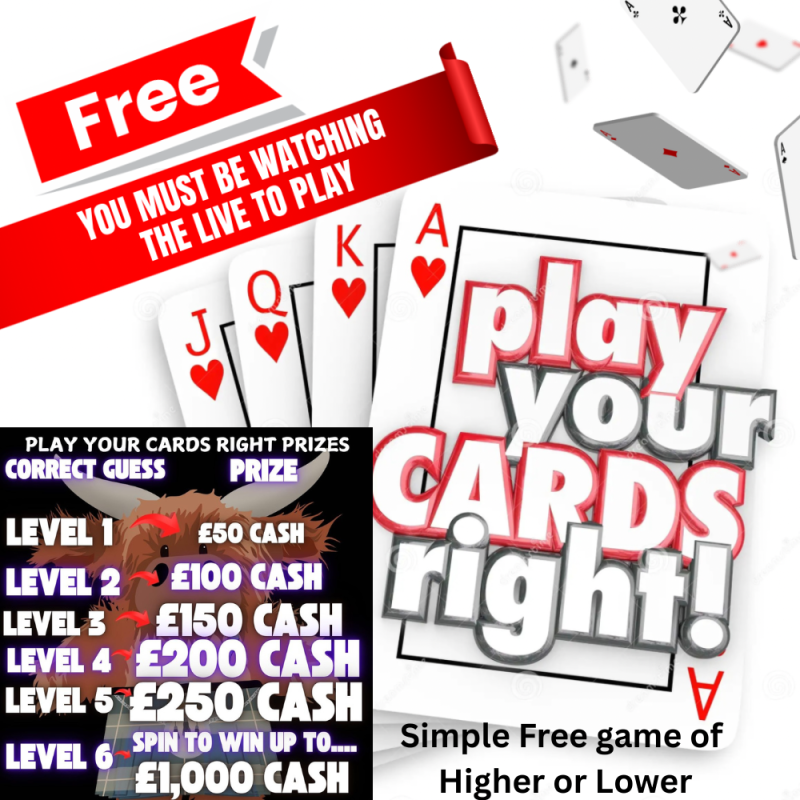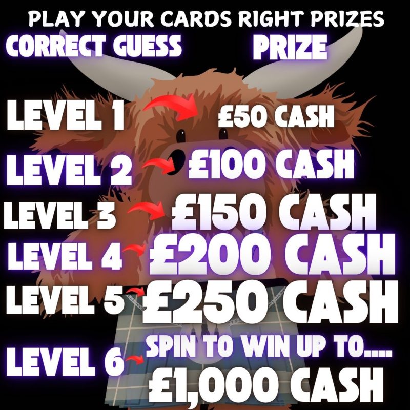 Play your Kilted Cards Right – Higher or lower to win some prizes, Win up to £1,000 cash for free!