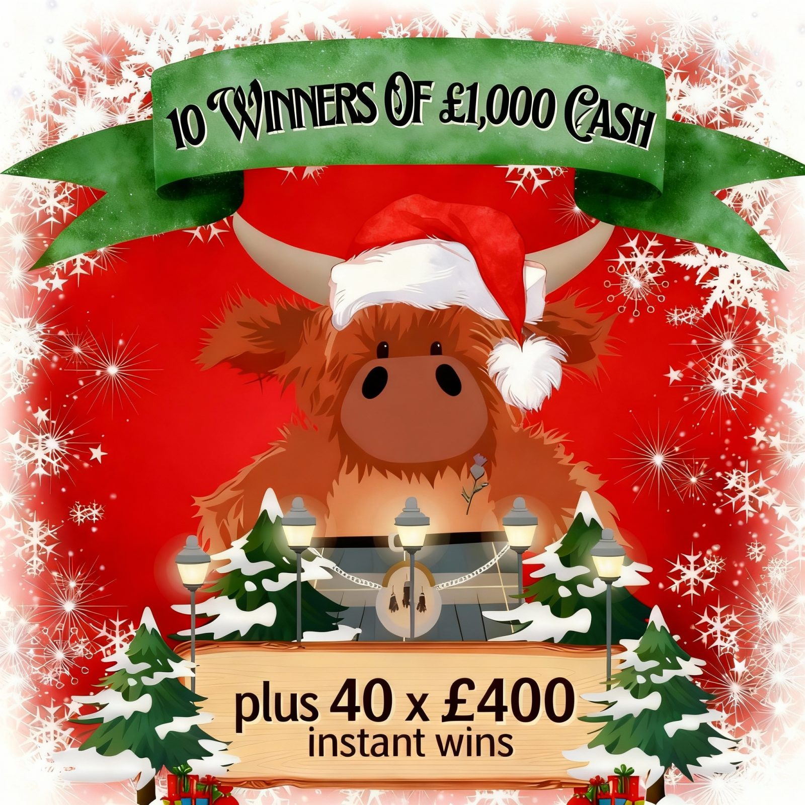 Christmas Cash – 10 Winners of £1,000 Cash + 40 x £400 instant wins!