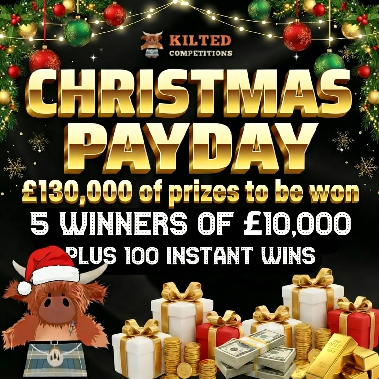 💰CHRISTMAS PAYDAY – 5 Winners of £10,000 Cash + 100 Awesome Instant Wins💰