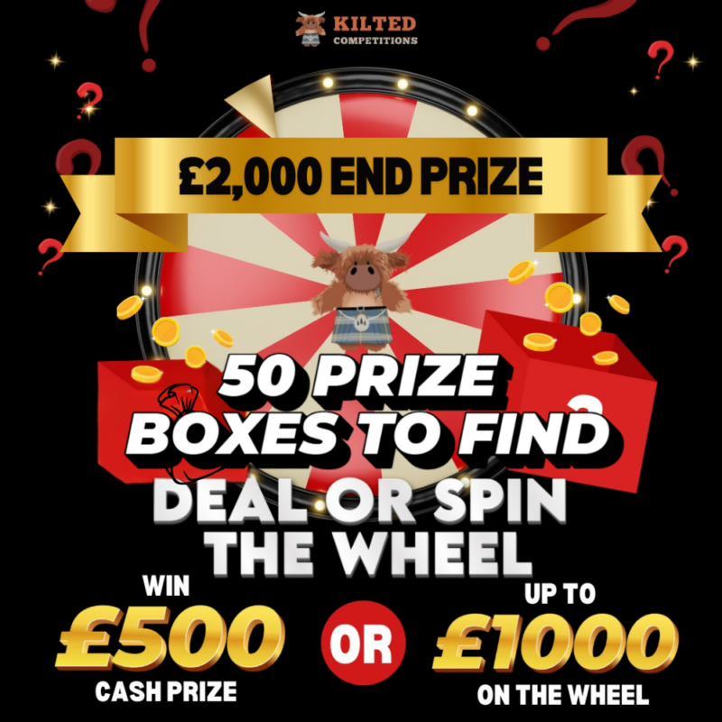 This competition is open to UK residents aged 18 or over. You may enter this competition up to 500 times. You will be randomly allocated ticket number(s) when ordering and will receive an email confirmation. The total amount of tickets for this competition is (19999). If all tickets do not sell out, the draw will happen on June 20, 2025 regardless. You must answer the competition question correctly to be entered into the live draw. Incorrect entries will not be notified or entered into the live draw. The live draw will take place live on @KiltedCompetitions Facebook using Google’s random number generator to select the winning ticket number from all Entrants. This competition is in no way sponsored, endorsed, administered by or associated with Facebook, Apple or Google. By entering the competitions, Entrants agree that neither Facebook, Apple nor Google have any liability and are not responsible for the administration or promotion of this competition.