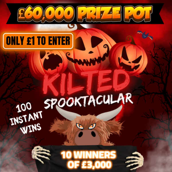 This competition is open to UK residents aged 18 or over. You may enter this competition up to 40 times. You will be randomly allocated ticket number(s) when ordering and will receive an email confirmation. The total amount of tickets for this competition is (399). If all tickets do not sell out, the draw will happen on January 12, 2025 regardless. You must answer the competition question correctly to be entered into the live draw. Incorrect entries will not be notified or entered into the live draw. The live draw will take place live on @KiltedCompetitions Facebook using Google’s random number generator to select the winning ticket number from all Entrants. This competition is in no way sponsored, endorsed, administered by or associated with Facebook, Apple or Google. By entering the competitions, Entrants agree that neither Facebook, Apple nor Google have any liability and are not responsible for the administration or promotion of this competition.