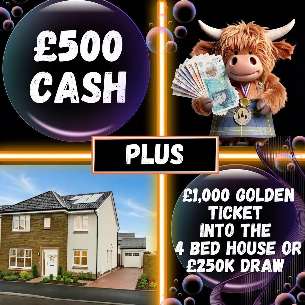 Double Bubble WIN £500 Quick CASH PLUS £1,000 Golden Ticket into the the 4 Bed House or £250,000 Cash Main Draw