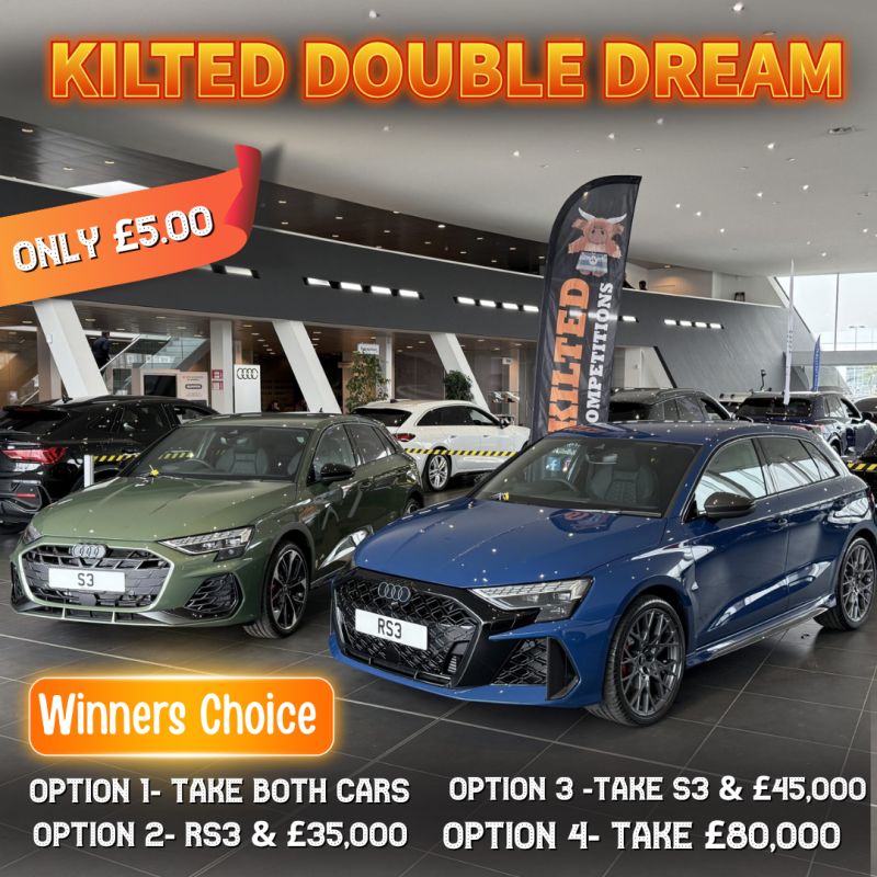 This competition is open to UK residents aged 18 or over. You may enter this competition up to 1000 times. You will be randomly allocated ticket number(s) when ordering and will receive an email confirmation. The total amount of tickets for this competition is (31999). If all tickets do not sell out, the draw will happen on June 22, 2025 regardless.Β The live draw will take place live on @KiltedCompetitions Facebook using Google’s random number generator to select the winning ticket number from all Entrants. This competition is in no way sponsored, endorsed, administered by or associated with Facebook, Apple or Google. By entering the competitions, Entrants agree that neither Facebook, Apple nor Google have any liability and are not responsible for the administration or promotion of this competition.
