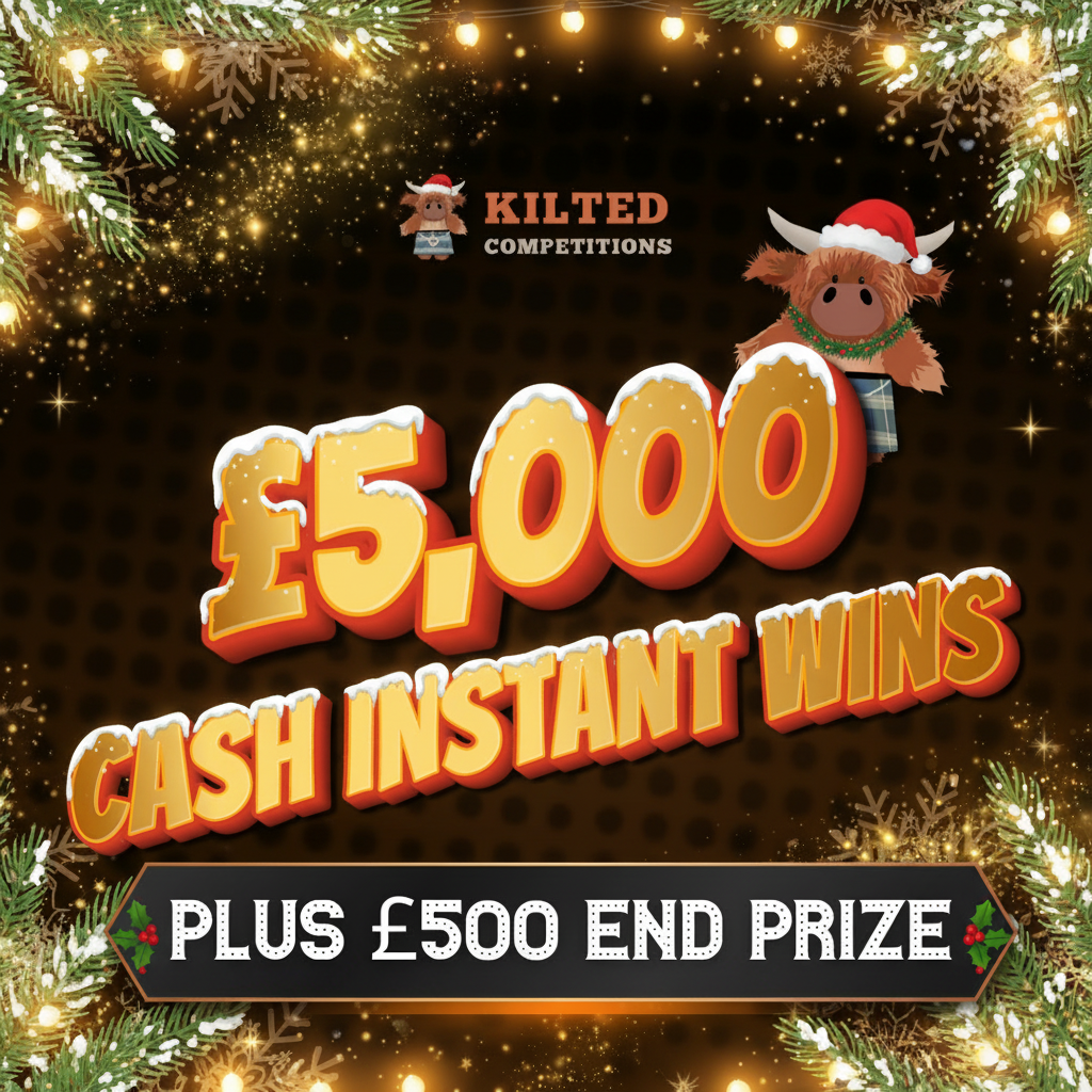 This competition is open to UK residents aged 18 or over. You may enter this competition up to 699 times. You will be randomly allocated ticket number(s) when ordering and will receive an email confirmation. The total amount of tickets for this competition is (6999). If all tickets do not sell out, the draw will happen on November 25, 2025 regardless. You must answer the competition question correctly to be entered into the live draw. Incorrect entries will not be notified or entered into the live draw. The live draw will take place live on @KiltedCompetitions Facebook using Google’s random number generator to select the winning ticket number from all Entrants. This competition is in no way sponsored, endorsed, administered by or associated with Facebook, Apple or Google. By entering the competitions, Entrants agree that neither Facebook, Apple nor Google have any liability and are not responsible for the administration or promotion of this competition.