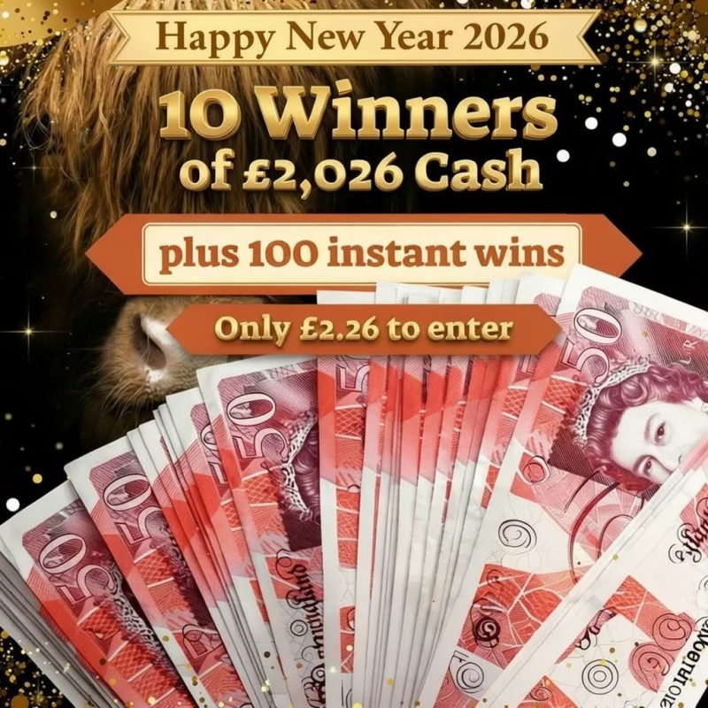 There are 9 x £2,026 cash instant wins up for grabs to end the year with a high and start the new year with a bang + 100 x £300 instant wins to find with a total prize pot of UP TO £50,260!