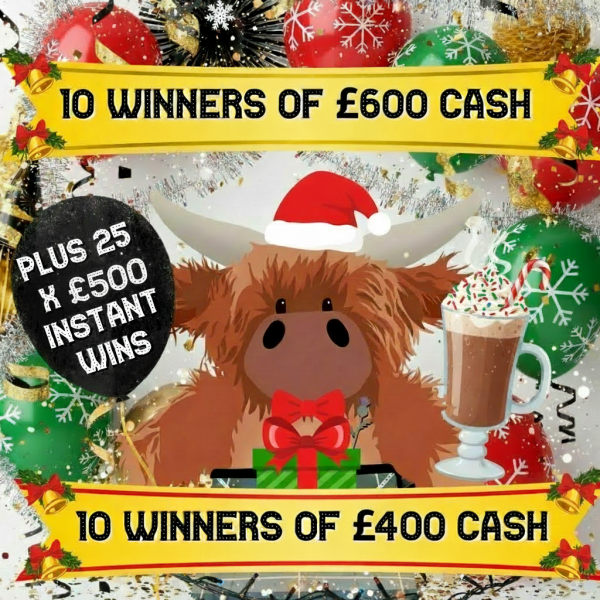 54 Epic instant wins to find listed on the table below & one lucky winner will win £5,000 cash which will be drawn using google random number generator on the night of the live draw.