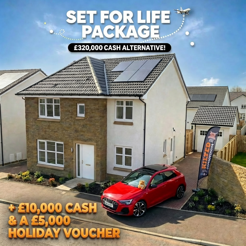 Set For Life: Win a Brand New 4 Bedroom Home , New 2026 Audi S3 Black Edition, £10,000 Cash & a £5,000 Holiday voucher