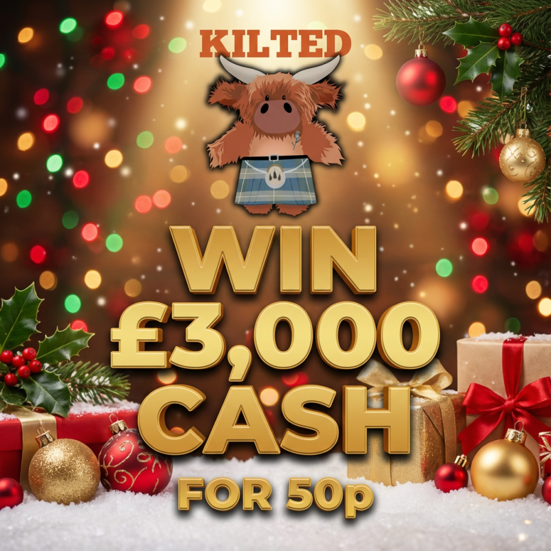 This competition is open to UK residents aged 18 or over. You may enter this competition up to 500 times. You will be randomly allocated ticket number(s) when ordering and will receive an email confirmation. The total amount of tickets for this competition is (9350). If all tickets do not sell out, the draw will happen on December 4, 2025 regardless. You must answer the competition question correctly to be entered into the live draw. Incorrect entries will not be notified or entered into the live draw. The live draw will take place live on @KiltedCompetitions Facebook using Google’s random number generator to select the winning ticket number from all Entrants. This competition is in no way sponsored, endorsed, administered by or associated with Facebook, Apple or Google. By entering the competitions, Entrants agree that neither Facebook, Apple nor Google have any liability and are not responsible for the administration or promotion of this competition.