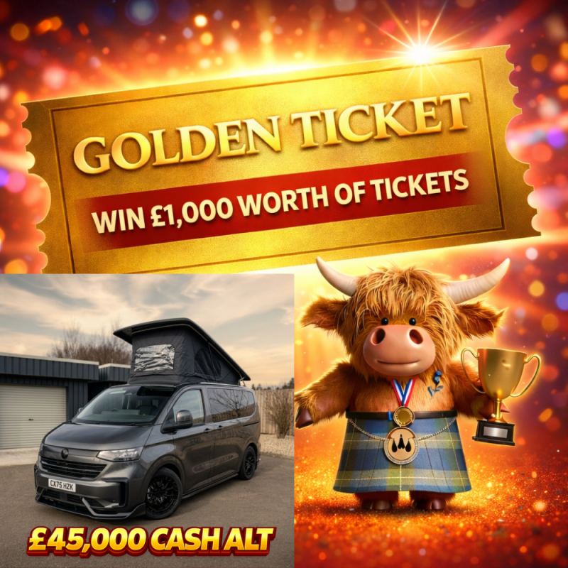 Win a £1,000 Golden Ticket into the VW Campervan or £45,000 Cash Draw