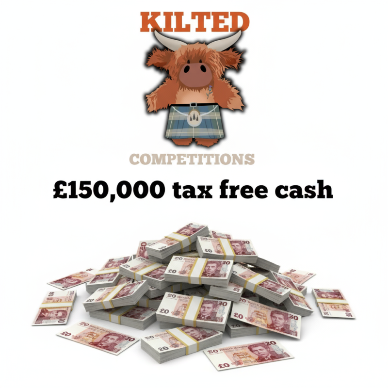 This competition is open to UK residents aged 18 or over. You may enter this competition up to 2499 times. You will be randomly allocated ticket number(s) when ordering and will receive an email confirmation. The total amount of tickets for this competition is (89999). If all tickets do not sell out, the draw will happen on December 31, 2025 regardless. You must answer the competition question correctly to be entered into the live draw. Incorrect entries will not be notified or entered into the live draw. The live draw will take place live on @KiltedCompetitions Facebook using Google’s random number generator to select the winning ticket number from all Entrants. This competition is in no way sponsored, endorsed, administered by or associated with Facebook, Apple or Google. By entering the competitions, Entrants agree that neither Facebook, Apple nor Google have any liability and are not responsible for the administration or promotion of this competition.