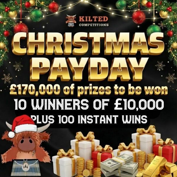 This competition is open to UK residents aged 18 or over. You may enter this competition up to 1999 times. You will be randomly allocated ticket number(s) when ordering and will receive an email confirmation. The total amount of tickets for this competition is (22999). If all tickets do not sell out, the draw will happen on February 23, 2025 regardless. You must answer the competition question correctly to be entered into the live draw. Incorrect entries will not be notified or entered into the live draw. The live draw will take place live on @KiltedCompetitions Facebook using Google’s random number generator to select the winning ticket number from all Entrants. This competition is in no way sponsored, endorsed, administered by or associated with Facebook, Apple or Google. By entering the competitions, Entrants agree that neither Facebook, Apple nor Google have any liability and are not responsible for the administration or promotion of this competition.